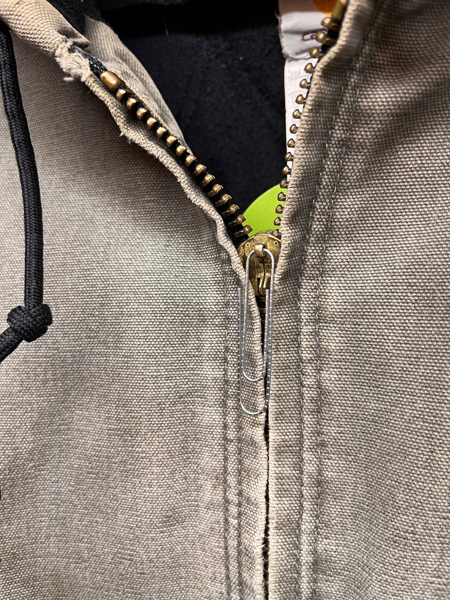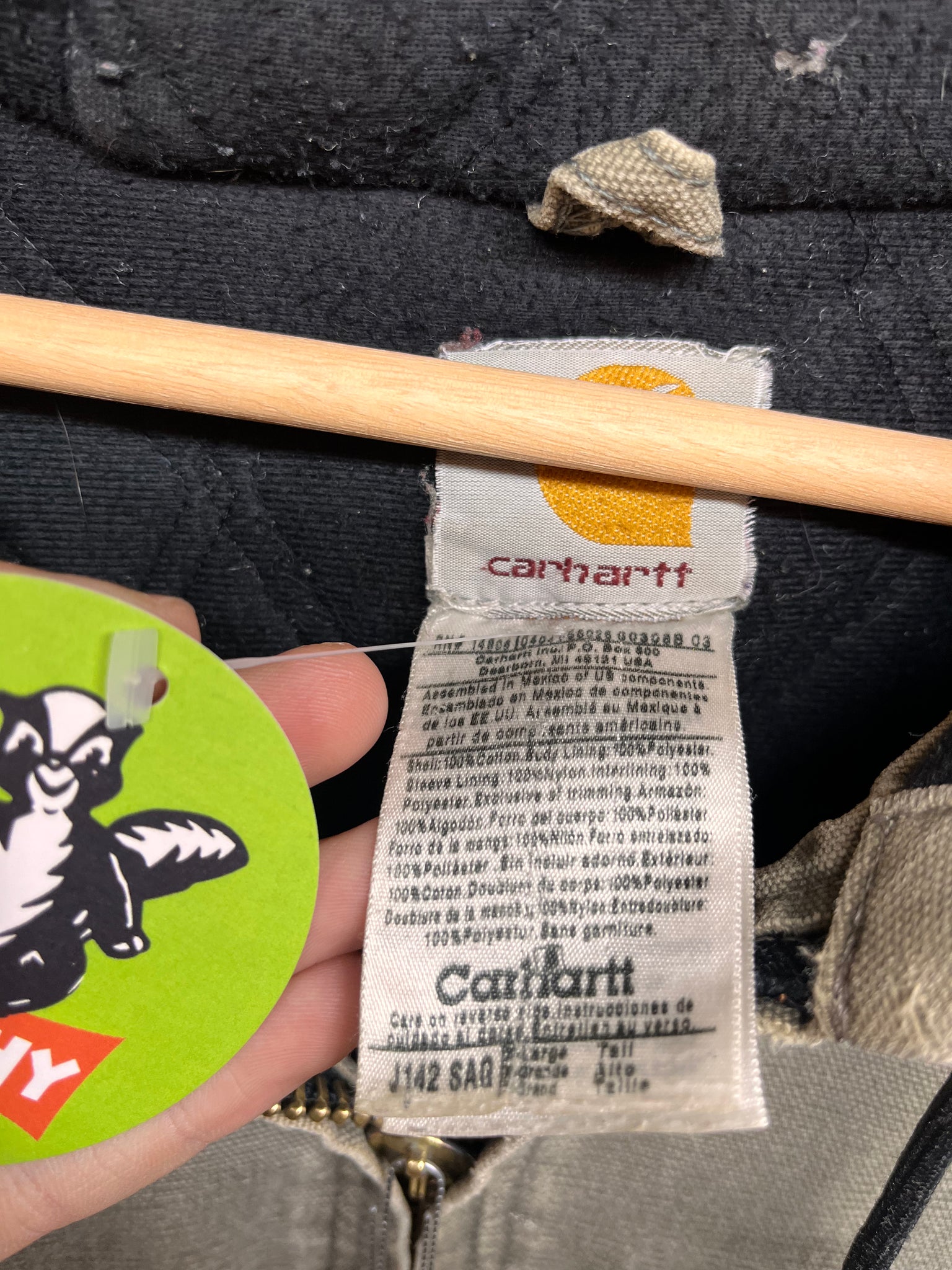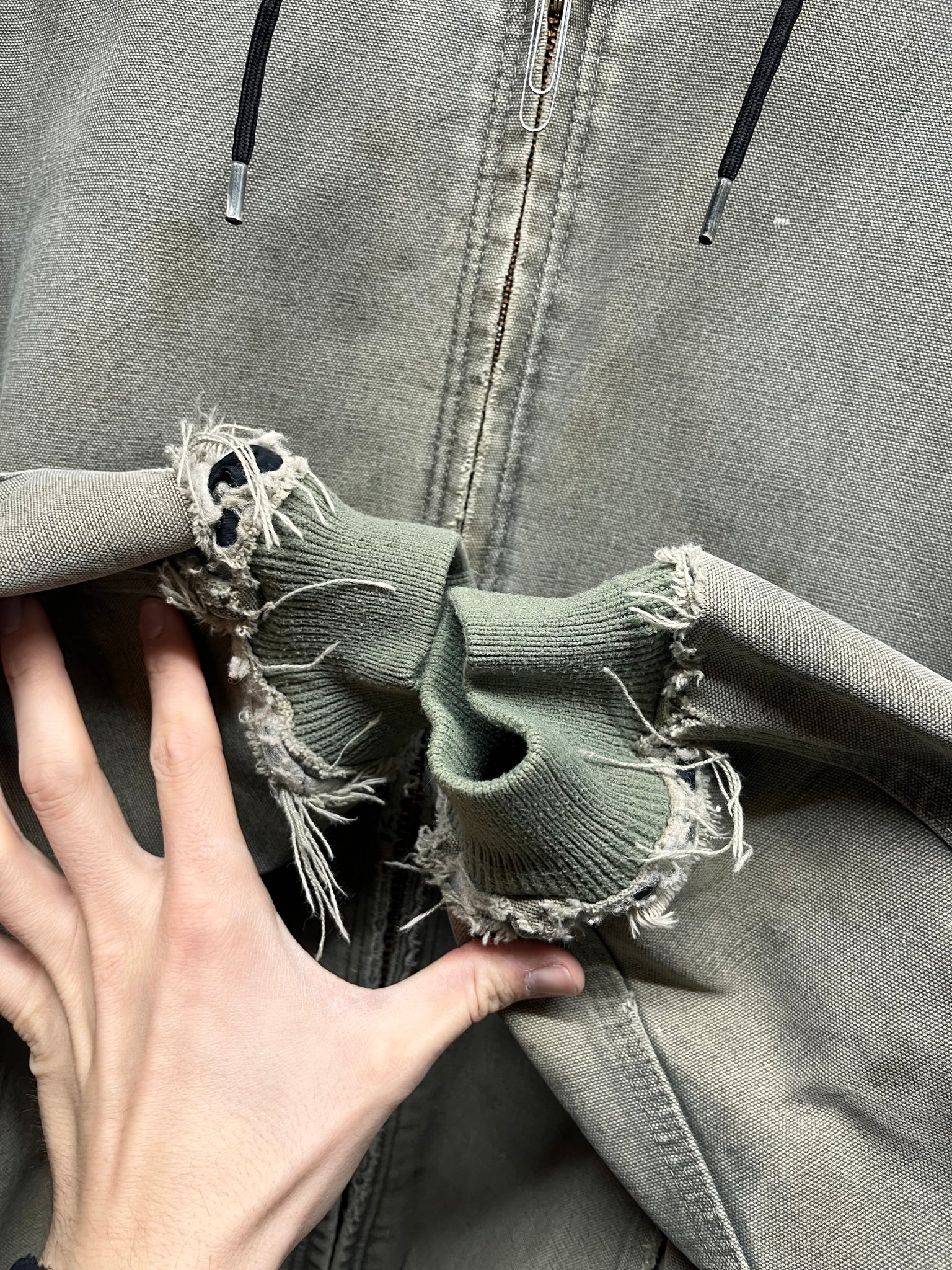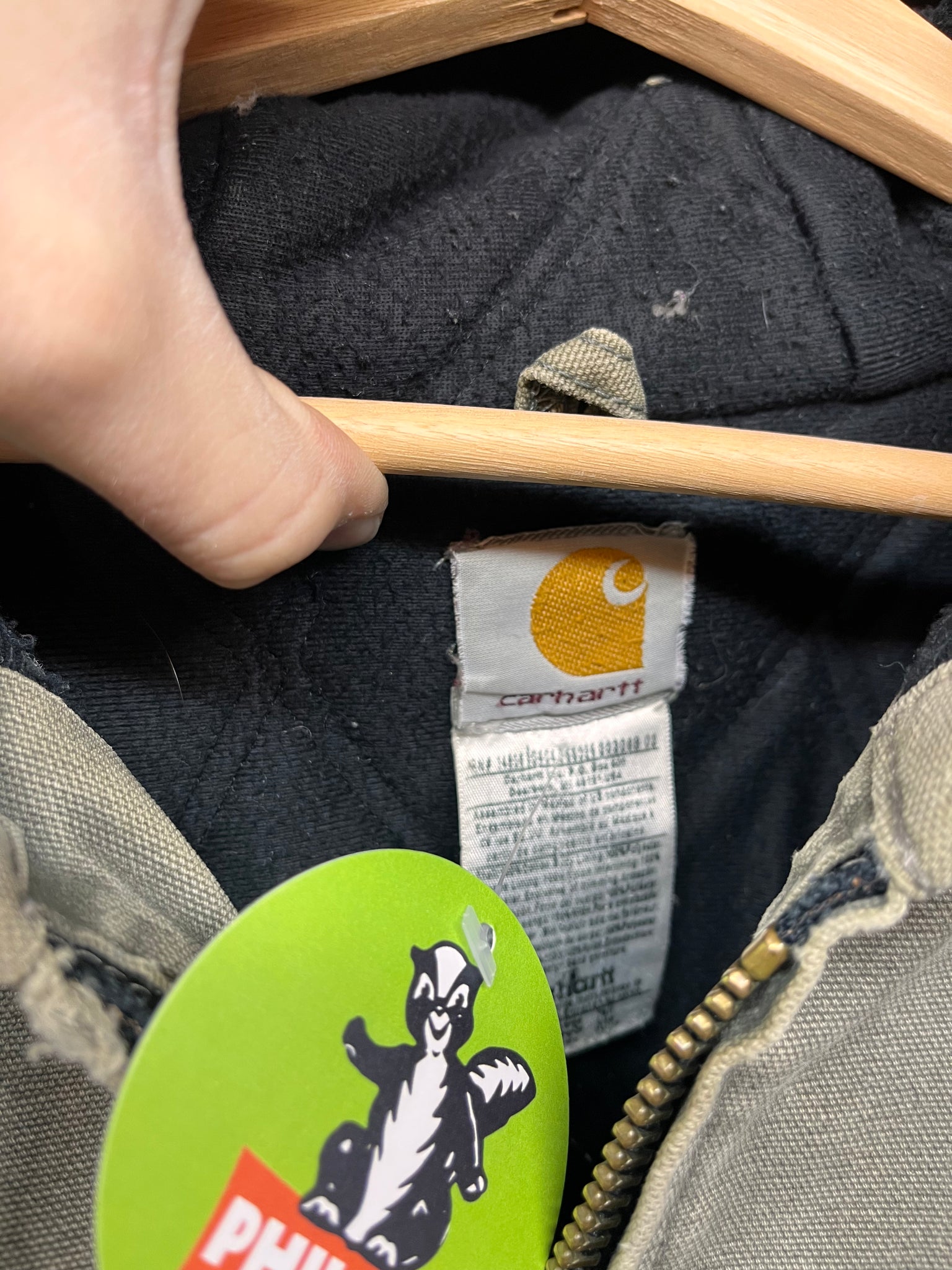 Vintage Carhartt J142 Grey Hooded Distressed Canvas Zip-Up Jacket: XL Tall