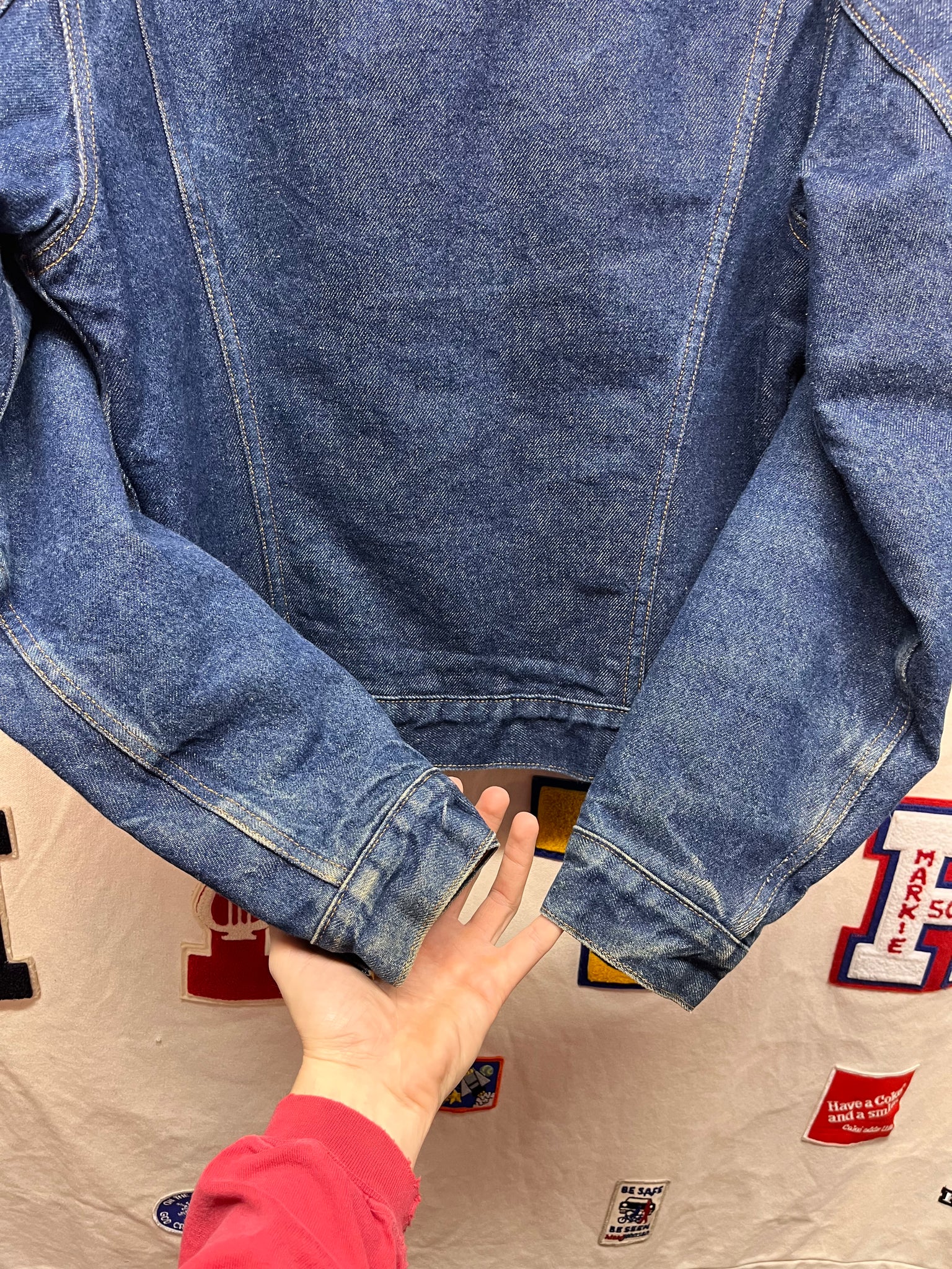 Pre-owned. Great condition. Still dark blue. Only signs of wear are near the wrists.