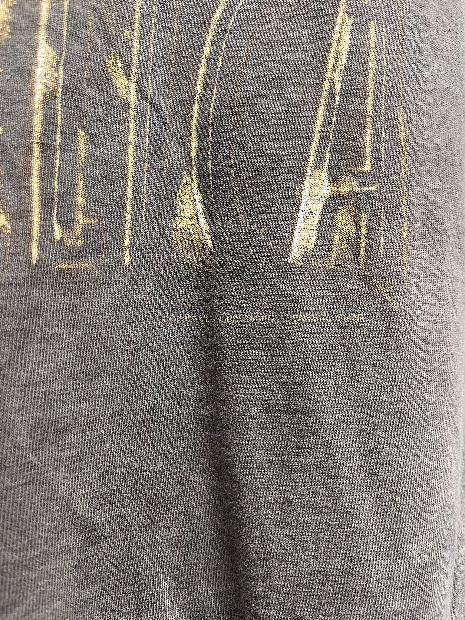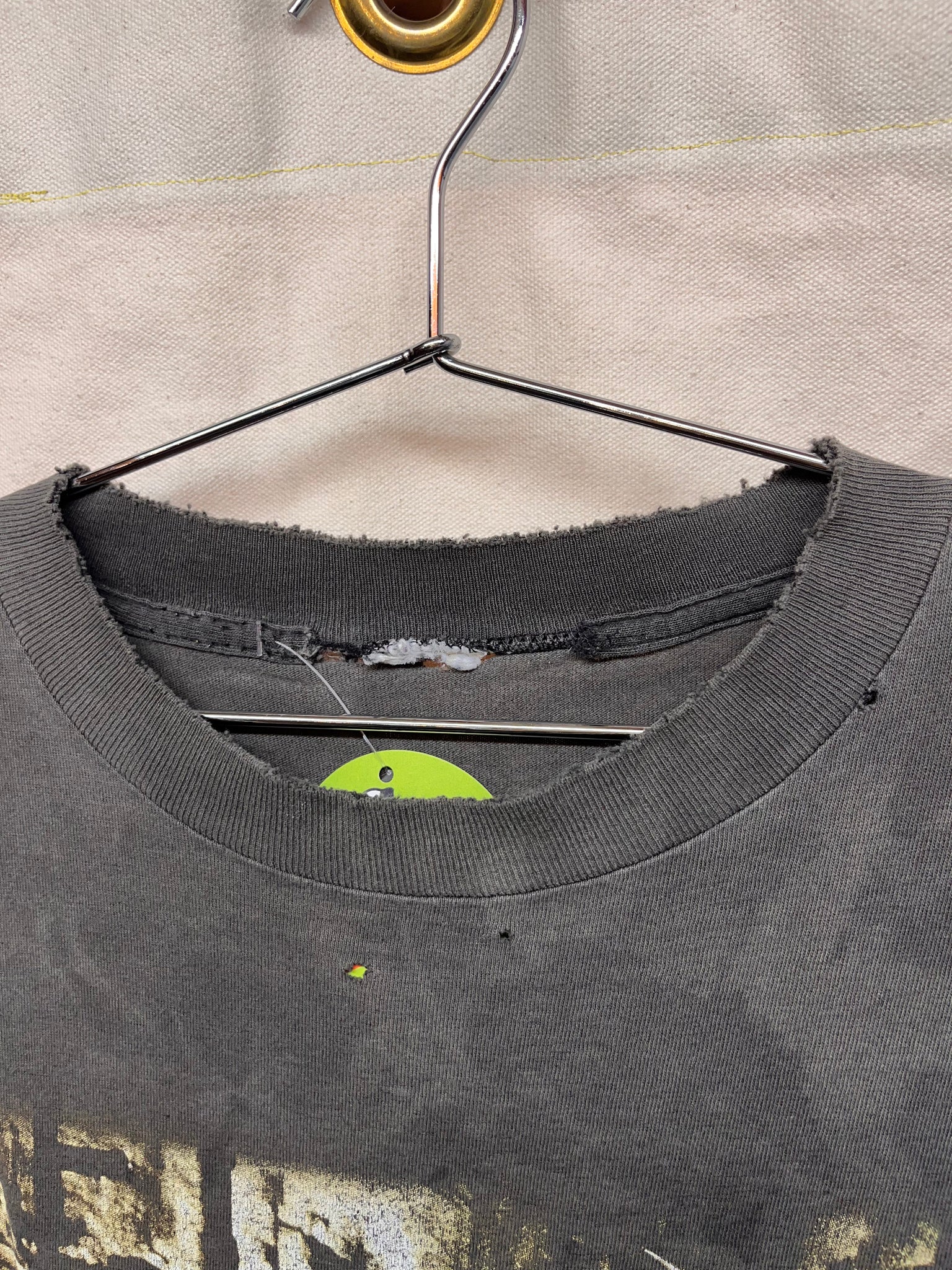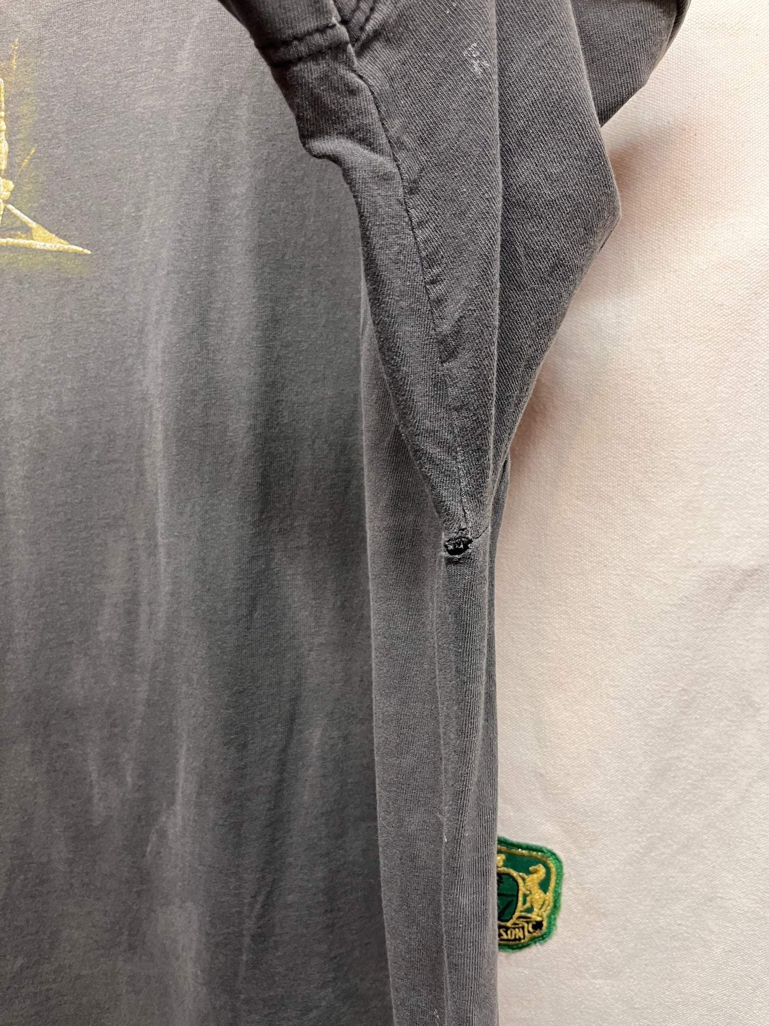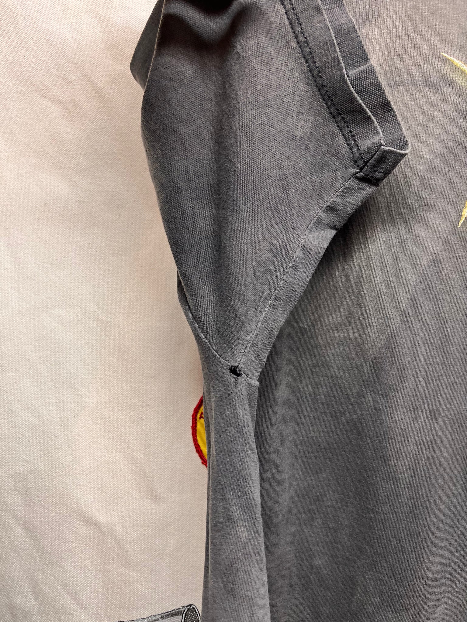 Pre-owned. Thrashed condition. Light bleach stains throughout. Distressing throughout. Small pitholes. Check photos.